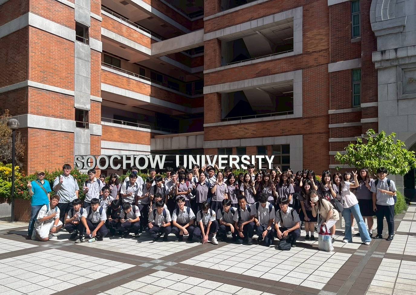 本校於114年8月14日暑假期間首度舉辦「2025東吳大學X淡江高中暑期小營隊」,新北市私立淡江高中由江丕得教務主任率領高二師生一行近200人,在外雙溪校區及城中校區參與由四大學院開設的體驗課程,為高中與大學交流開啟嶄新的合作模式。
